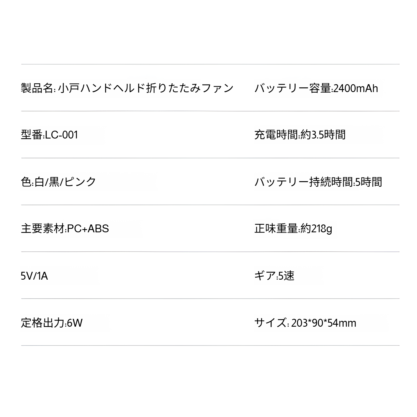 折りたたみ式卓上扇風機の正面画像